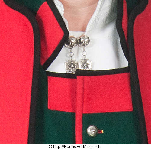 Mansjettknappene er i likhet med knappene på jakke, bukse og vesten i sølv. Mansjettknappene er laget i samme Femblads rosemønster mønster som knappene.