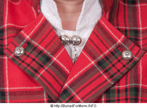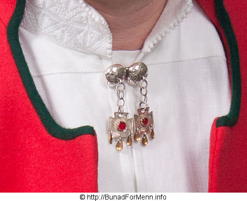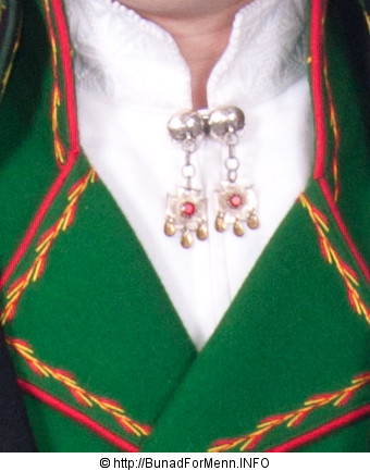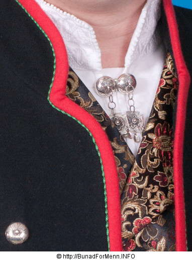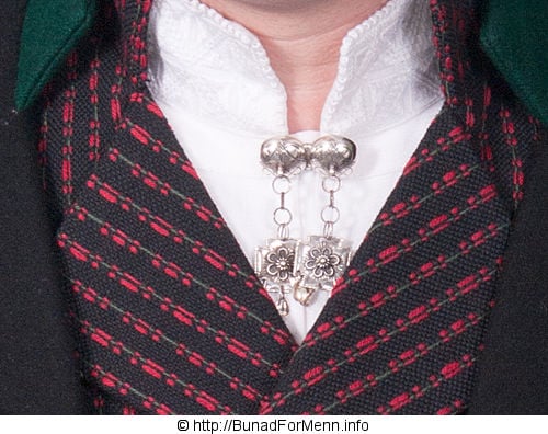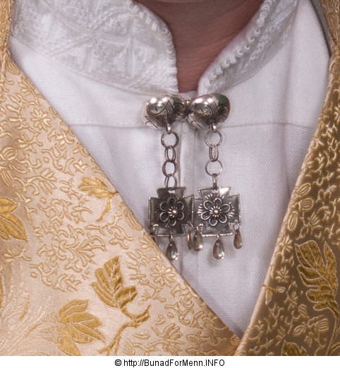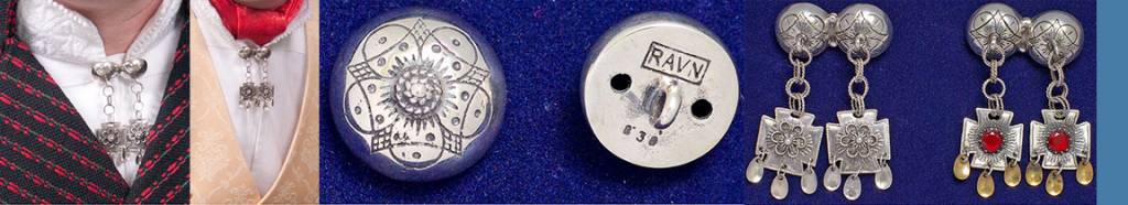 Alt vårt sølvet er håndlaget etter gamle mønstre. Dobbel halsknapp som er festet med nål på plate. Mansjettknapper og alle knapper i vest, trøye og knebukser er i sølv. Det samme gjelder knespennen. Denne type bunadsølv er også kalt Bergenssølv fra gammelt av. Grunnen er at det var et stort antall sølvsmeder nettopp i Bergen som leverte over store deler av landet. Bergenssølvet brukes i mange av bunadene som er vanlige i Norge.