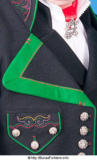 Mannsbunad fra Fana har knapper med 5 blads rose mønster