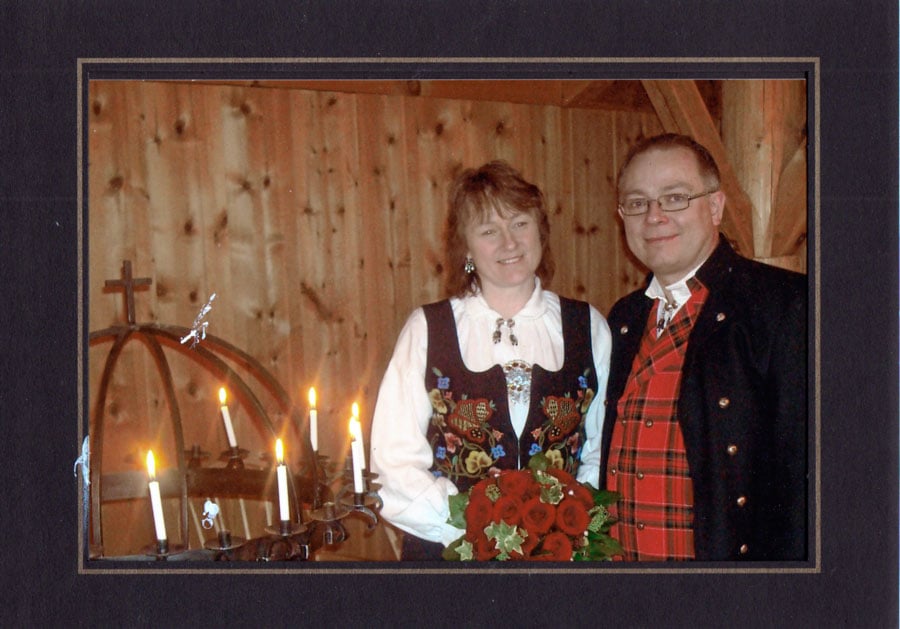 Vi takker for den gode hjelpen vi fikk med tanke på bunad til Kjell Roger. Vi er veldig fornøyde med bunaden! Hilsen Eldri og Kjel Roger.