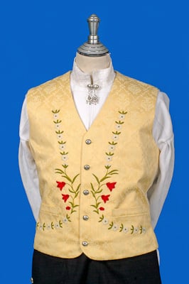 Silkeveste med sølvknapper og vakre broderier av kornblomster på Løkendrakt
