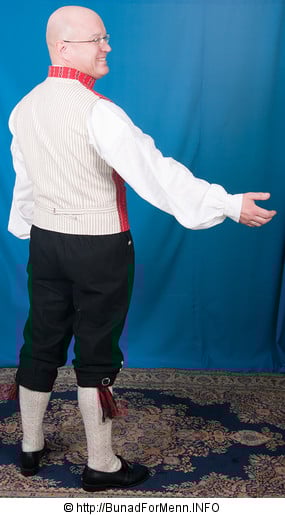 Mannsbunad fra Østfold leveres med knespenne til knebuksene i håndlaget sølv.
