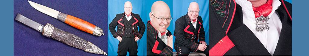 Øst-Telemark herrebunad med svart jakke og røde biser – Øst-Telemarkbunad kr 43.000