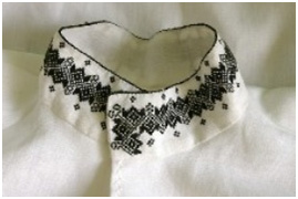 Vest-Telemarkbunad har klassiske hvitsøm mønsteret også kalt «Fransk broderi»